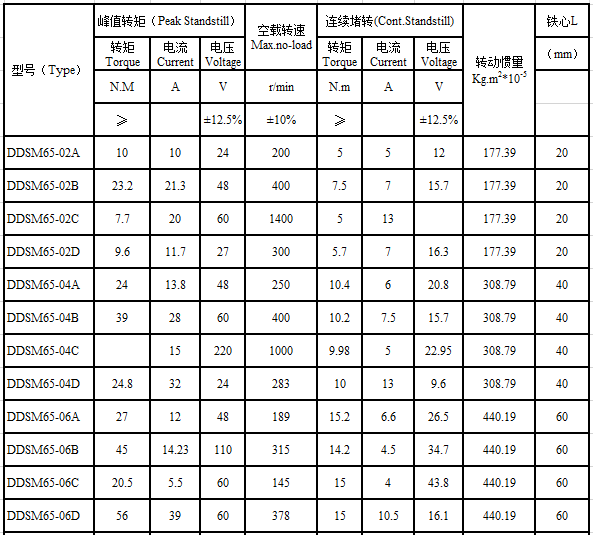 DDSM65 series brushless direct drive motor performance indicators