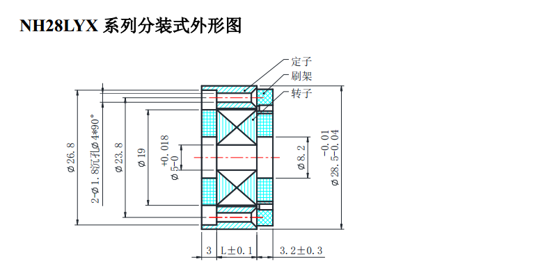 NH28LYX series of dc torque motor dimensions