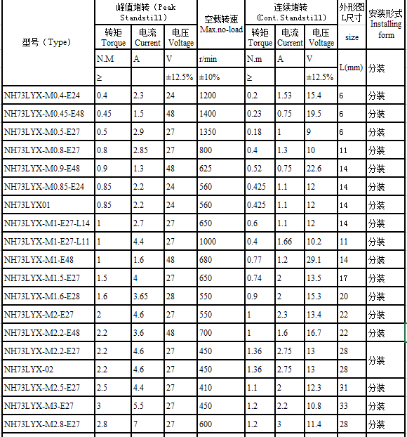 NH73LYX series brushless torque motor performance indicators