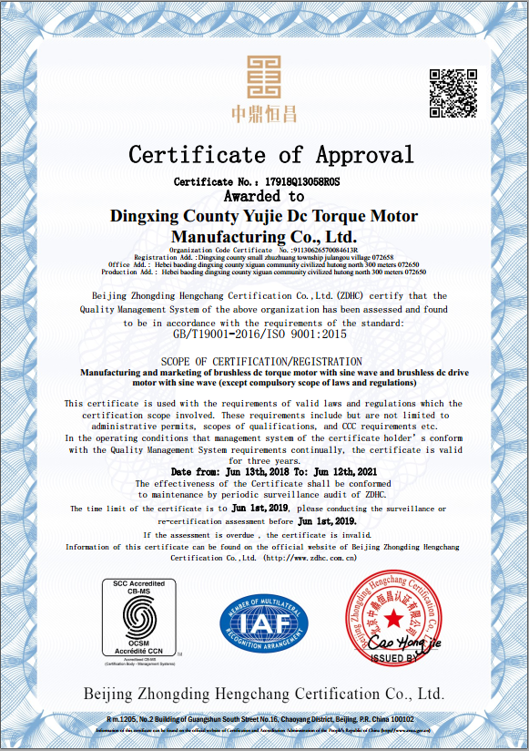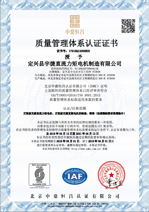 | 河北宇捷電機(jī)科技有限公司通過質(zhì)量管理體系認(rèn)證 |